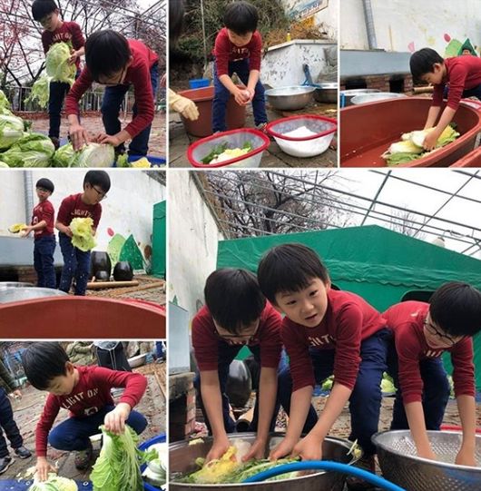 송일국은 15일 자신의 인스타그램에 "김장! 올해는 야무지게 김치를 만들었다고 하네요~ 트리 앞 사진은 덤! 사진 보내주신 유치원 선생님께 감사드립니다"라는 글과 함께 사진을 게재했다.