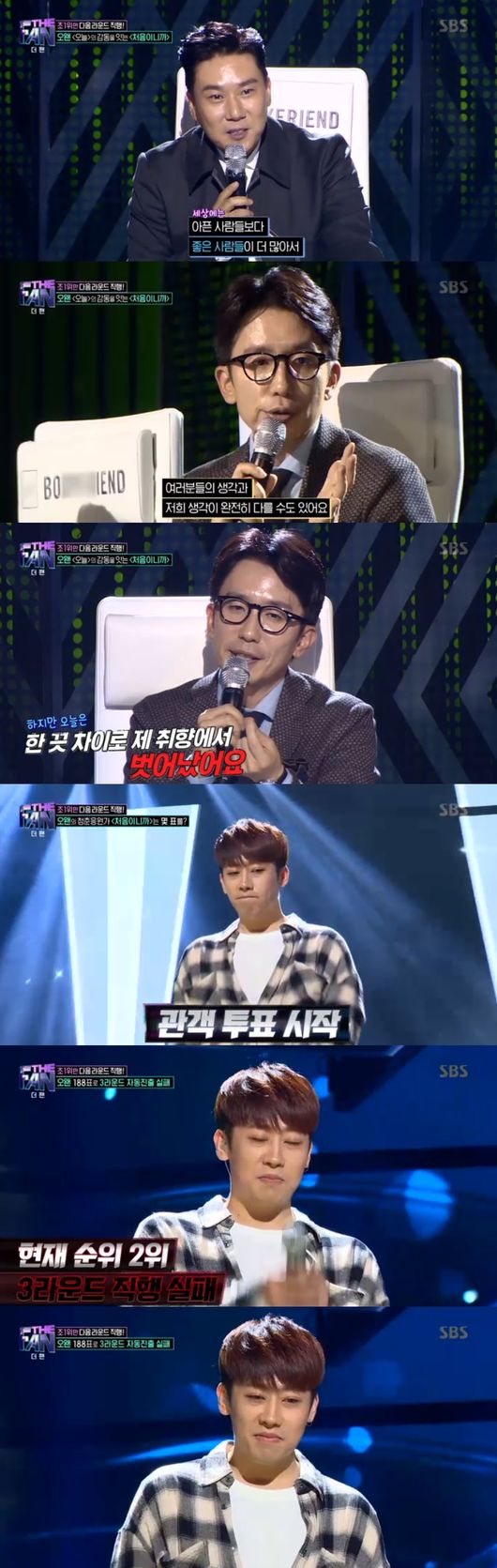 그의 호소력짙은 무대에 눈물흘리는 관객도 있었다. 하지만 유희열은 "앞부분은 '오'하고 들어갔다가, 뒷부분 한 끗차이에서 발이 빠지더라"면서 가장 중요한 메시지를 담은 후렴구를 언급했다. 노랫말의 감성과 목소리가 잘 어울렸는데 이번엔 가사의 정서를 표현하기에 음이 좀 높았다고 했다. 이상화는 "너무 기대를 하고 들었다"면서 "제 기대의 미치지 못했다"면서 청춘을 위로하는 소재에 비해 표현이 신선하지 않았다고 말했다.이제 관객들의 결정이 남았다. 첫번째 경연자 유라의 표를 넘어야하는 상황이었다. 하지만 정말 기대치가 높았던 걸까. 오왠은 188표를 받으며 3라운드 자동진출에는 실패하는 안타까운 결과를 낳았다.