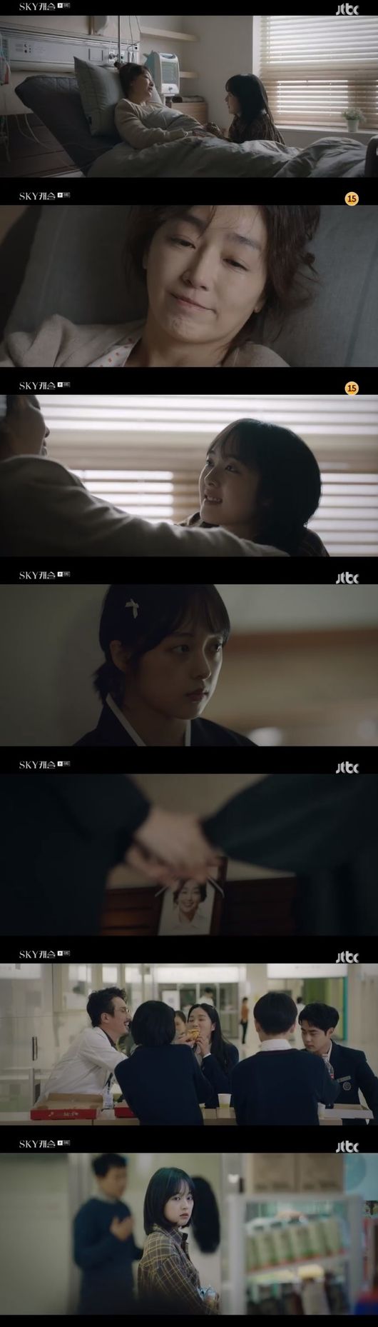 15일 오후 방송된 JTBC 금토드라마 'SKY 캐슬'에서는 김혜나(김보라 분)가 엄마 김은혜(이연수 분)의 유품을 정리하던 중, 아빠로 추정되는 강준상(정준호 분)의 사진과 번호를 발견하는 모습이 그려졌다.