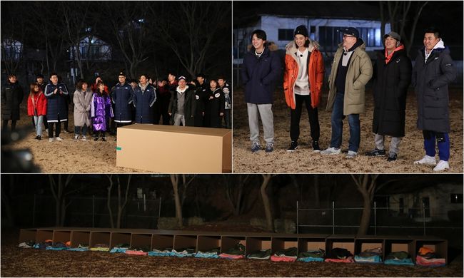 공개된 스틸에는 비엔나 소시지처럼 줄줄이 이어져있는 1인용 냉장고 박스가 담겨 눈길을 끈다. 그 동안 모기망, 1회용 비닐, 스티로폼, 에어캡 등 모두의 예상을 180도 뒤엎는 상상초월 잠자리가 멤버들과 시청자들을 깜짝 놀라게 했던 바. 이번에는 어떤 잠자리 복불복이 그들을 기다릴지 호기심을 증폭시킨다.
