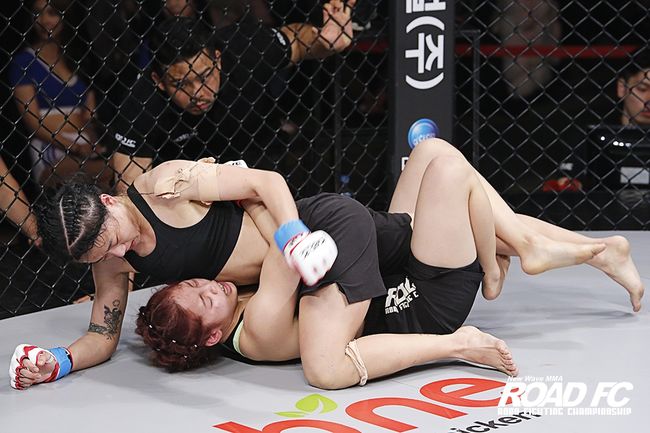 ‘꽃미녀 파이터’ 이수연(24, 로드짐 강남MMA)이 자신보다 경험이 많은 ‘선배’ 이예지(19, 팀제이)를 제압했다. 반드시 승리하겠다는 독한 마인드와 前챔피언 이윤준의 지도력이 합쳐진 결실이다.