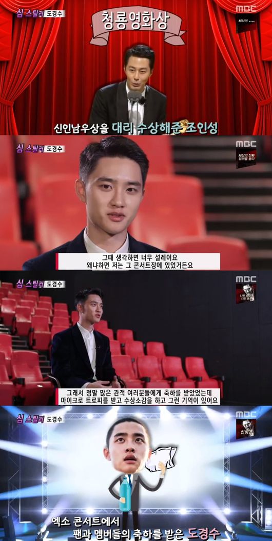 엑소 멤버 겸 배우 도경수가 청룡영화제 남자 신인상을 대리수상한 때를 떠올렸다.