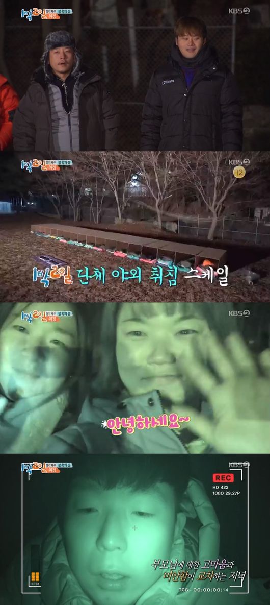 연습생들과 김준호 그리고 이세진까지 16명은 냉장고 박스에서 야외 취침을 하게 됐다. 김준호는 여자 후배들을 위해서 목도리와 모자를 선물했다. 김준호는 "'1박2일'에서 기운을 받아서 스타가 돼라"라고 격려하면서 후배들의 잠자리를 챙겼다. 14명의 연습생들은 개인 카메라로 코미디언의 길을 격려해준 부모님들에게 감동적인 영상편지를 보냈다.
