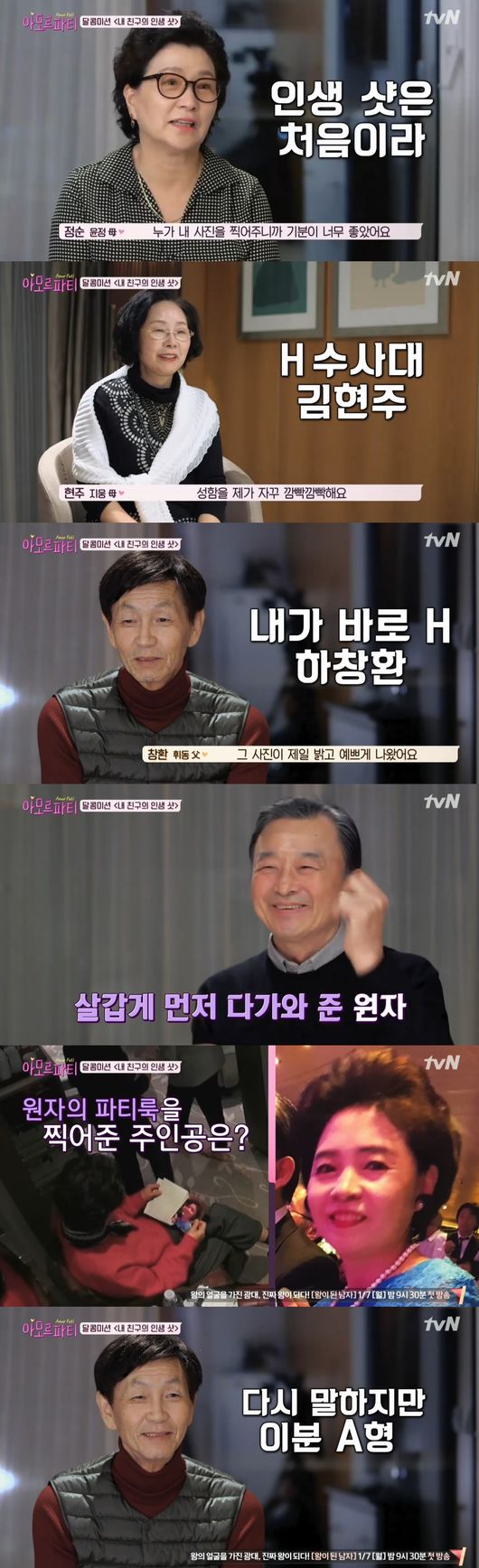 16일 전파를 탄 tvN '아모르파티' 2회에서 나르샤 어머니 방원자, 이청아의 아버지 이승철, 하휘동의 아버지 하창환, 배윤정의 어머니 이정순, 허지웅의 어머니 김현주는 크루즈 여행 첫 날 서로에게 인생샷을 찍어주라는 미션을 받았다.