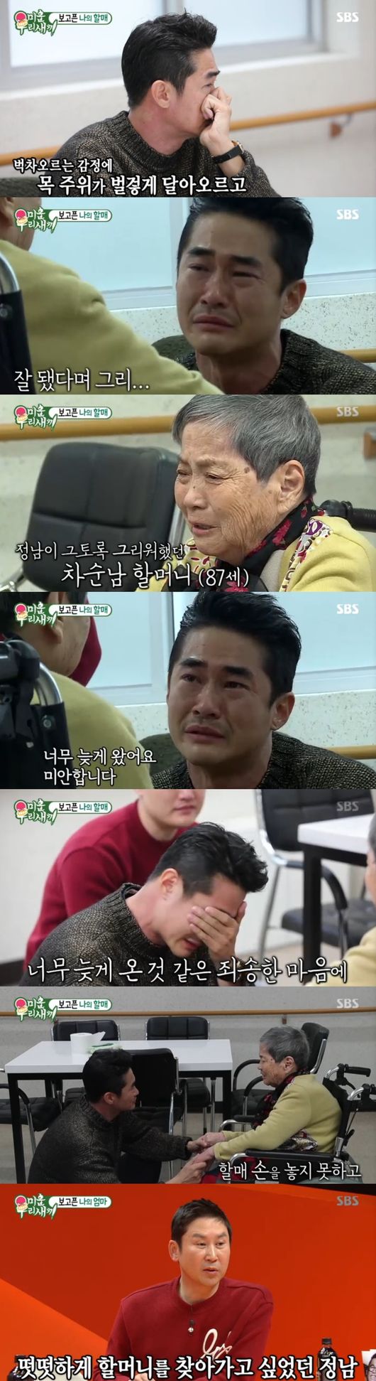 16일 방송된 SBS 예능 '미운우리새끼'에서 배정남과 차순남 할머니의 만남이 눈물바다를 만들었다.