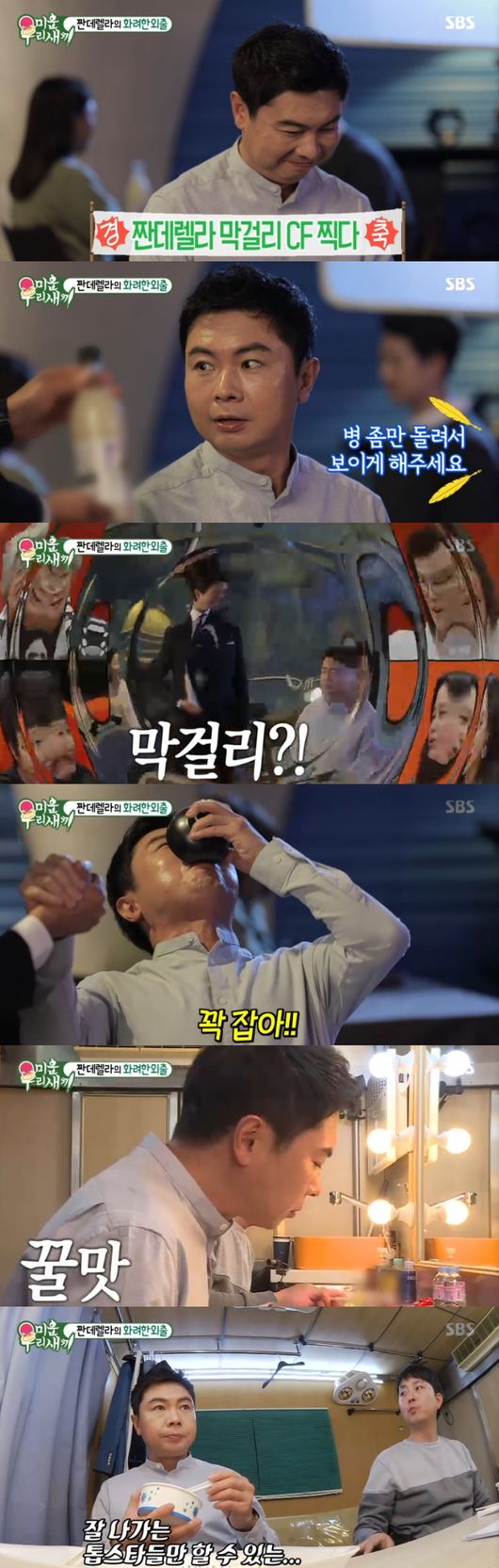 드디어 촬영장에 도착, 배우 조우진도 있었다. 알고보니 막걸리 CF였던 것. 이를 정석용이 딱 맞추었다. 긴 촬영을 끝내고 어느덧 저녁이 됐고, 임원희는 늦은 저녁식사를 마쳤다. 하정우, 이병헌, 조정석 등 잘나가는 톱스타들만 한다는 술 광고에 뿌듯해했다.