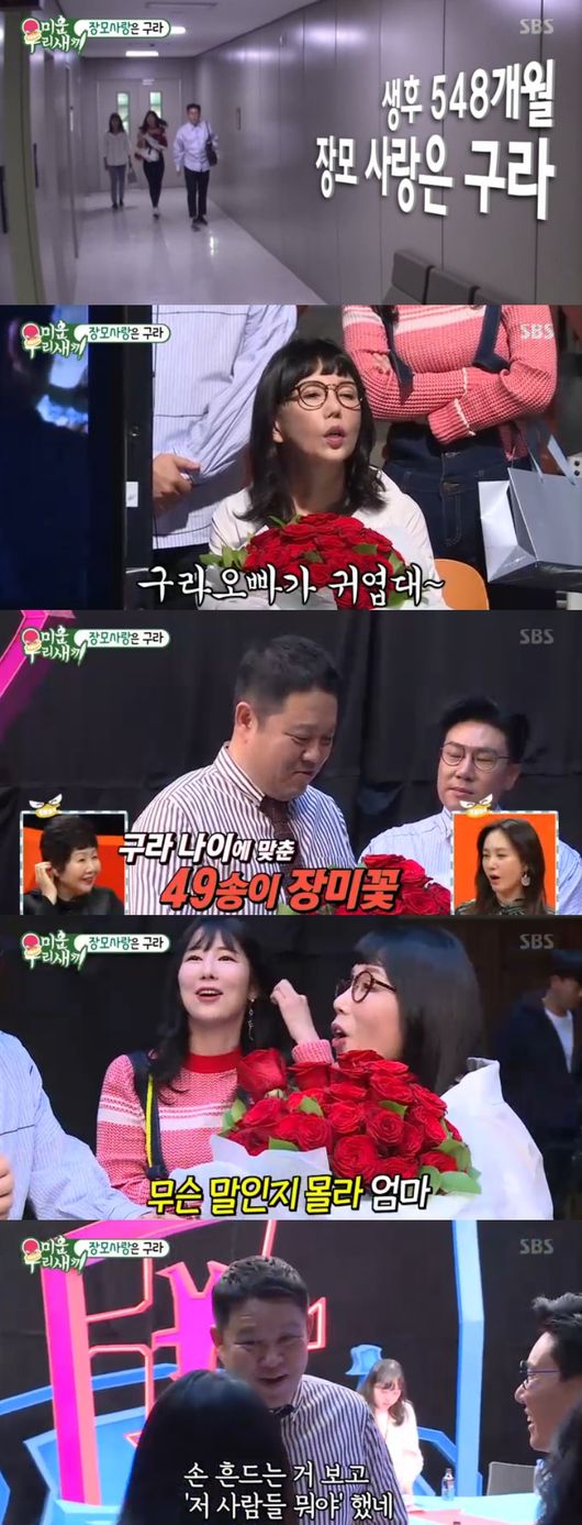 바로 '동상이몽' 녹화장이었다. 사유리母는 "눈썹사이 미간 주름이 좋다"면서 남편과 닮았다고 했다. 이어 꽃까지 들고 소녀같은 모습으로 다가갔다. 그러면서 "날 변태할머니로 생각하면 어떡하냐"고 걱정해 웃음을 안겼다.