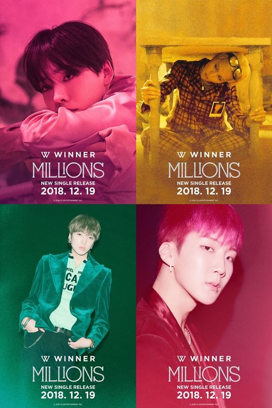 위너가 오는 19일 새 싱글 '밀리언즈(MILLIONS)'로 컴백한다. 지난 4월 발표했던 정규2집 '에브리데이(EVERYD4Y)' 이후 8개월 만에 발표하는 신곡. 오래 기다렸던 만큼 더 완성도 높은 음악을 선물할 위너다.