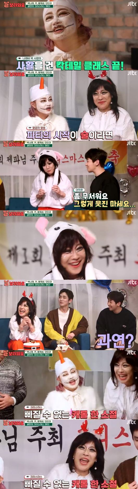 노사연과 박나래의 크리스마스 파티 현장이 공개됐다. 딘딘, 황제성, 샤이니의 키까지 함께 했다.