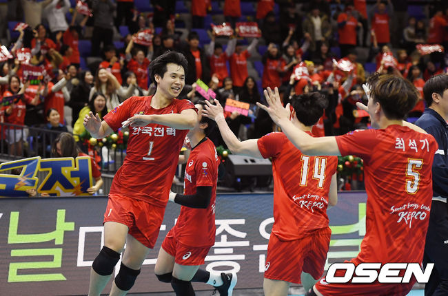 한국전력은 18일 홈인 수원실내체육관에서 열린 ‘도드람 2018-2019 V-리그’ 남자부 KB손해보험과의 3라운드 맞대결에서 세트스코어 3-2(25-23, 20-25, 25-14, 29-27, 15-9)로 승리했다. 한국전력은 17경기 만에 시즌 첫 승을 신고할 수 있었다.