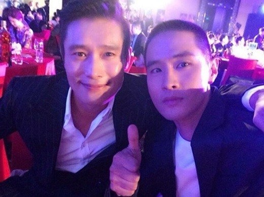 사진 속 유승준은 이병헌과 어깨동무를 한 채 카메라를 응시하고 있다. 이병헌은 유승준 옆 밝게 미소짓고 있다.