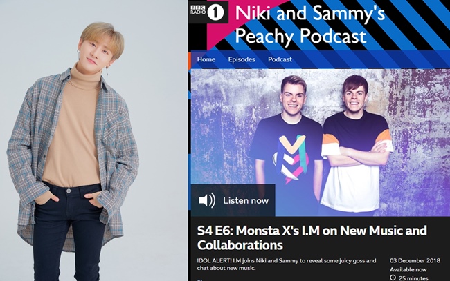 최근 영국 BBC 라디오와 “Niki and Sammy's Peachy Podcast (니키 앤드 새미의 피치 팟캐스트)”에서는 몬스타엑스 멤버 아이엠의 특집 팟캐스트 방송이 진행됐다.
