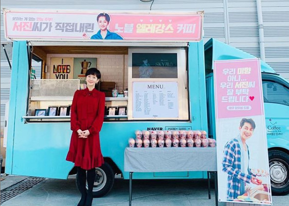 공개된 사진 속 염정아는 정우성이 보낸 커피차 앞에 서서 미소를 짓고 있다. "우리 미향 아니 우리 서진씨 잘 부탁드립니다♥"라는 정우성의 다정한 멘트가 인상적이다.