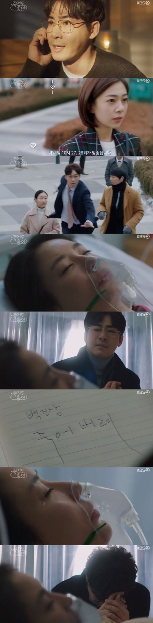 19일 방송된 KBS2 수목드라마 ‘죽어도 좋아’에서 백진상(강지환)은 이루다(백진희)를 유일하게 살릴 수 있는 방법이 '타임루프'라는 사실을 알아차리고 소멸된 타임루프의 숨겨진 키(key)를 알아내려고 했다.