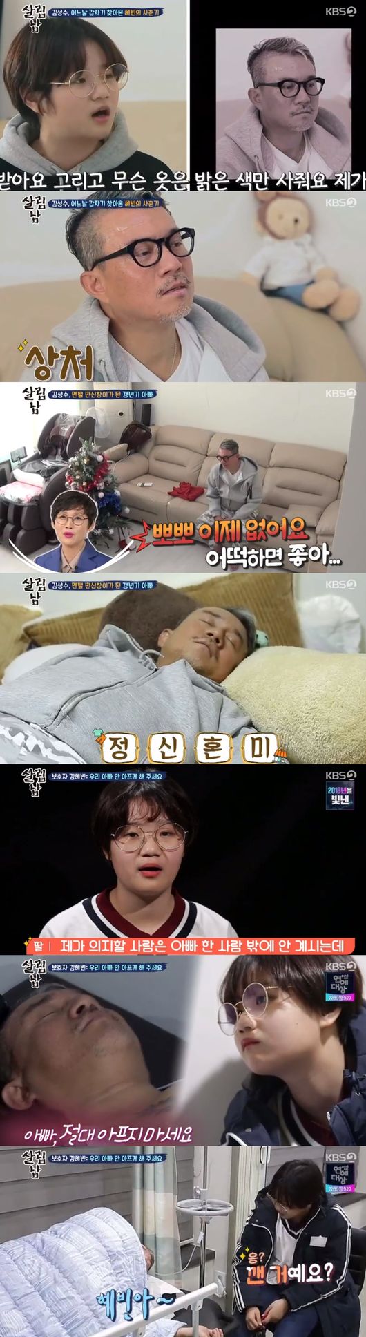 이후 김성수는 방으로 들어갔고 기침을 했다. 아빠의 계속되는 기침 소리에 걱정된 혜빈은 아빠에게 병원으로 가자고 했다. 혜빈은 건강검진을 받기 위해 병원에 누워있는 아빠의 손을 잡아줬다. 혜빈은 "아빠가 아프실까봐 걱정되기도 했고 또 무섭기도 했다. 아빠 안 아팠으면 좋겠다고 생각했다"고 말했다. /rookeroo@osen.co.kr