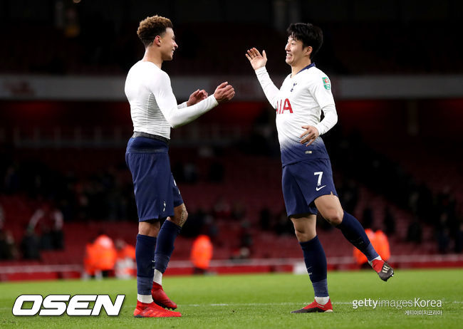 토트넘은 20일(이하 한국시간) 새벽 잉글랜드 에미레이츠 스타디움서 열린 2018-2019 카라바오컵(잉글랜드 리그컵) 8강전서 전반 20분 손흥민의 결승골과 후반 14분 알리의 추가골에 힘입어 아스날을 2-0으로 물리쳤다.