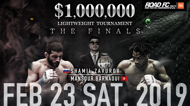 ROAD FC(로드FC)는 2019년 2월 23일 서울 장충체육관에서 XIAOMI ROAD FC 052를 개최한다. 이날 샤밀 자브로프(34, AKHMAT FIGHT CLUB)와 만수르 바르나위(26, 팀 매그넘/트리스타짐)의 100만불 토너먼트 결승전이 펼쳐진다.