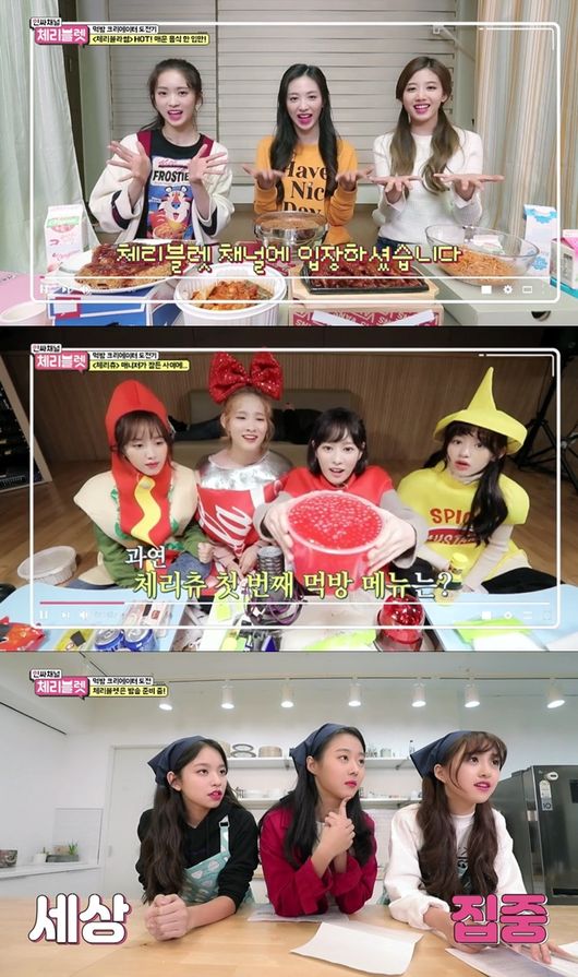 FNC의 10인조 새 걸그룹 체리블렛(Cherry Bullet: 해윤 유주 미래 보라 지원 코코로 레미 채린 린린 메이)이 ‘인싸 먹방돌’로 등극했다.