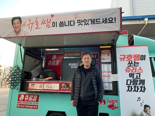 20일 소속사 Fe엔터테인먼트 공식 SNS 계정에는 간식차 앞에서 포즈를 취하고 있는 김갑수의 사진과 “규호쌤이 쏜다! ‘땐뽀걸즈’ 마지막까지 파이팅”이라는 글이 함께 게재돼 눈길을 끌고 있다.