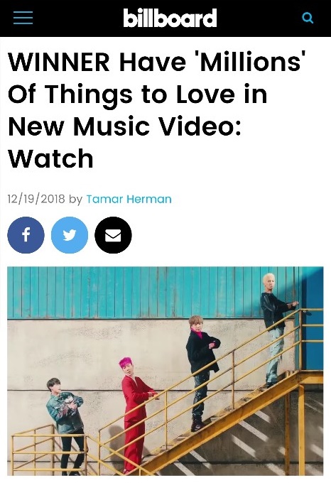 미국 빌보드가 위너의 새 싱글 ‘MILLIONS(밀리언즈)’를 호평과 함께 집중 조명했다.