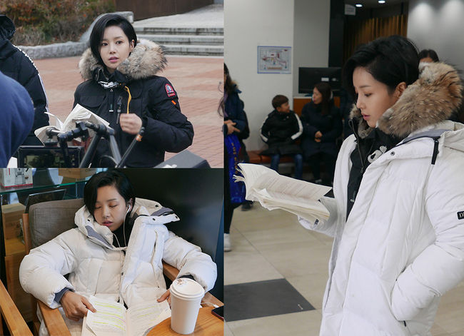사진을 보면 남규리는 촬영 시작 전까지 대본을 손에서 놓지 않고, 읽고 또 읽으며 캐릭터에 몰입하고 있다.