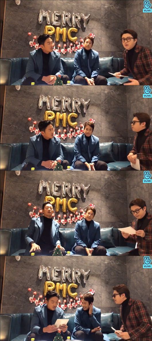 20일 오후 포털사이트 네이버 V앱을 통해 ‘하정우X이선균 PMC: 더벙커 테이크포인트 V라이브’가 생중계 됐다. 이날 생중계에 하정우와 이선균이 함께했다. 이선균과 하정우는 같은 색깔의 코트를 입고 등장하면서 시작부터 환상적인 호흡을 자랑했다.