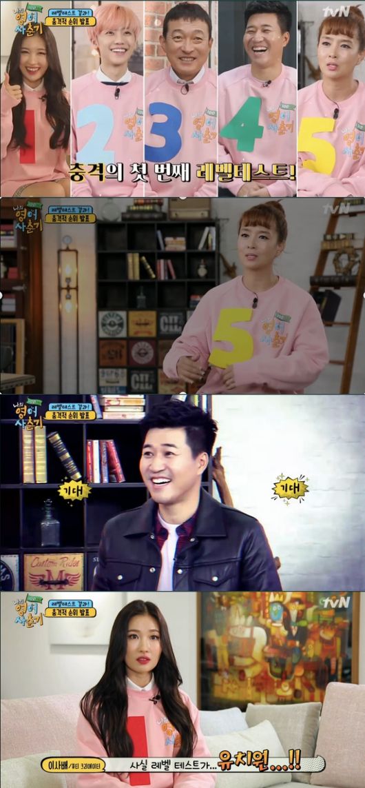 뷰티 크리에이터 이사배가 다섯명의 ‘영알못’ 멤버 중에서 첫 레벨테스트 1등을 차지했다. 2등은 재민, 3등은 이재룡, 4등은 김종민. 꼴찌는 김원희였다. 이들은 과연 100시간 뒤에 해외에서 영어를 사용할 수 있을까.
