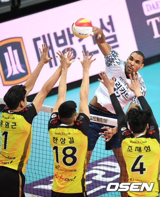 우리카드는 안산 상록수체육관에서 열린 ‘2018-2019 도드람 V-리그’ OK저축은행과의 경기에서 세트스코어 3-2(25-23, 25-19, 15-25, 21-25, 15-13)로 이겼다. 승점 2점을 보탠 우리카드(승점 27점)는 삼성화재(승점 25점)를 제치고 4위로 올라섰다. 3위 OK저축은행(승점 31점)은 선두권 추격의 기회를 다음으로 미뤘다.