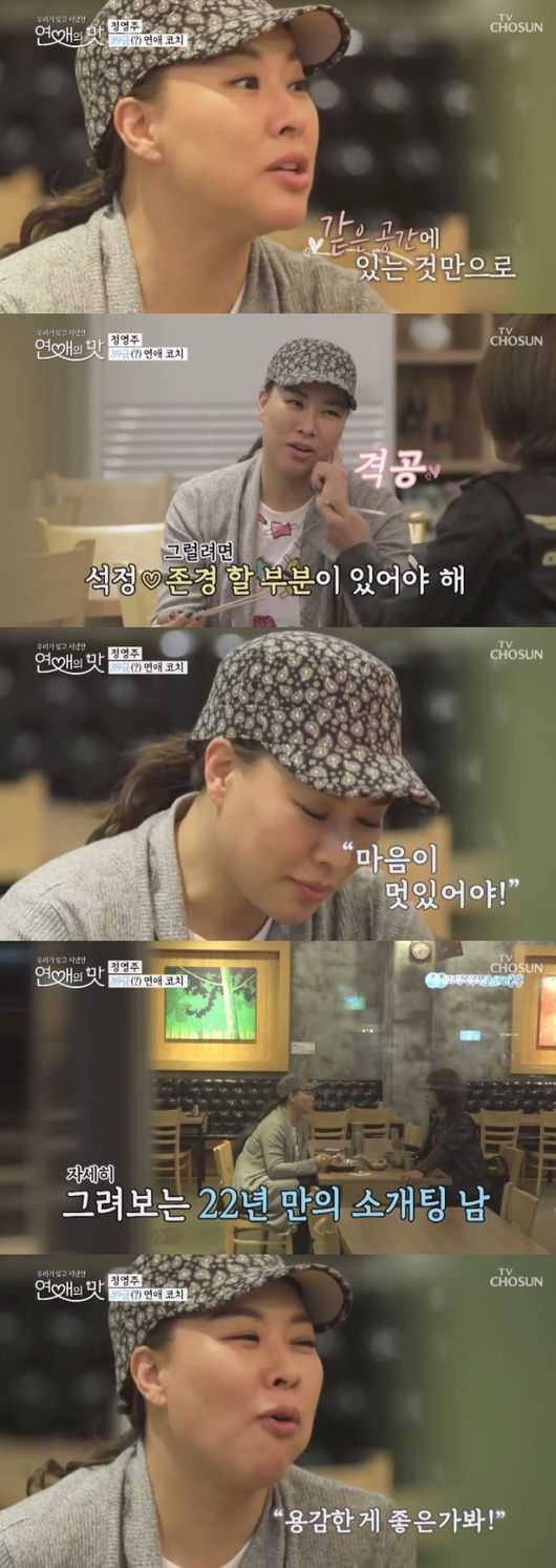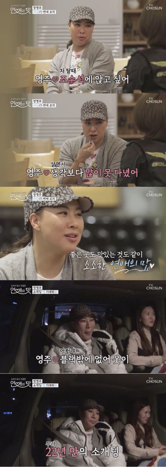 정영주는 지난 20일 방송된 TV조선 ‘연애의 맛’에 새로운 출연자로 합류했다. ‘연애의 맛’은 사랑을 잊고 지내던 대한민국 대표 싱글 스타들이 그들이 꼽은 이상형과 연애하며 사랑을 찾아가는 신개념 연애 리얼리티 프로그램.
