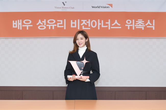 배우 성유리가 국제구호개발 NGO 월드비전의 고액후원클럽 ‘비전아너스’ 회원으로 위촉됐다.