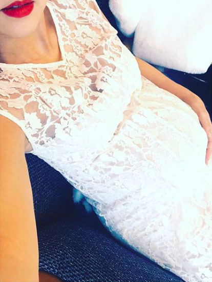 사진 속에서 이윤미는 드레스를 입고 만삭인 배를 쓰다듬고 있는 모습이다.