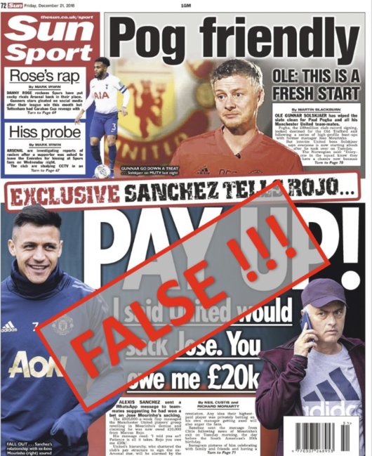 알렉시스 산체스(맨체스터 유나이티드)가 조세 무리뉴 감독과 사이가 좋지 않았던 기자의 보도에 정면으로 반박했다.