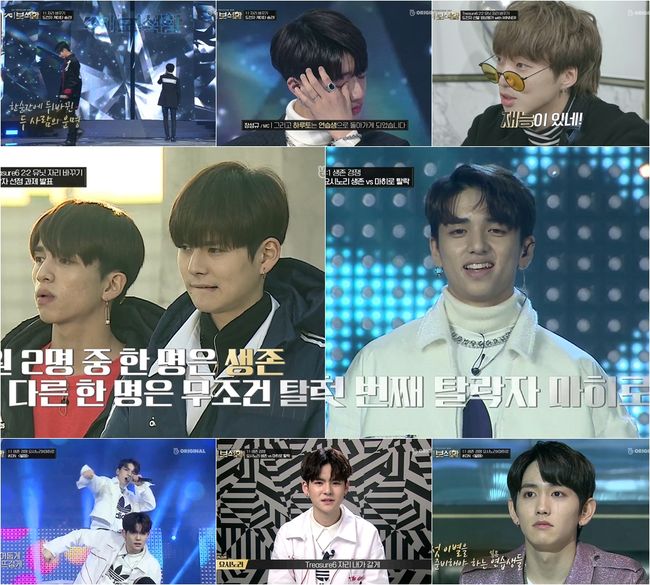 트레저 J 마히로가 'YG보석함' 최초의 탈락자로 선정되며 본격적인 서바이벌의 냉혹함을 실감케 했다. 21일 밤 10시 네이버 브이라이브(V앱)에서 선공개된 'YG보석함' 6화(https://tv.naver.com/v/4842962)에서는 지난주에 이어 데뷔조와 추가 도전자들의 자리 뺏기 경연이 이어졌다. 그리고 트레저 7인의 기쁨도 잠시, 트레저 수가 6인으로 축소되고 탈락자가 발생하는 2:2 유닛 미션이 시작되는 등 데뷔를 향한 숨가쁜 변화가 휘몰아쳤다.