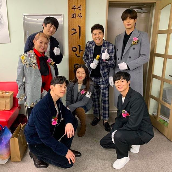 사진 속에는 MBC ‘나혼자 산다’ 무지개 회원들이 기안84의 회사 개업을 축하하기 위해 모여 단체사진을 찍고 있는 모습이다.