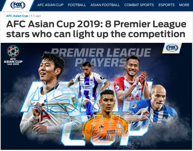 이 매체는 폭스스포츠 아시아는 세계 최고 리그인 프리미어리그에서 활약 중인 8명의 스타를 조명하며 손흥민에 대해 "의심할 바 없이 아시안컵 최고 스타가 될 것"이라며 "한국 윙어는 2015년 토트넘 합류 후 점점 강해지고 있다. 그는 올 시즌 리그에서 3골 2도움을 기록했고 다른 대회에서도 3골을 넣었다"고 칭찬했다.