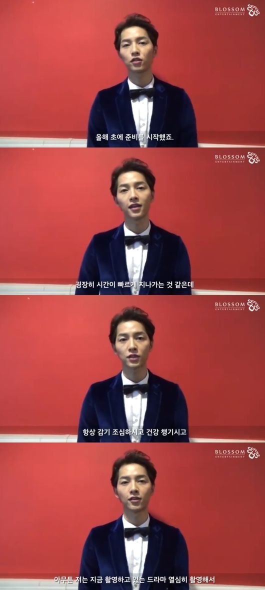 이어 송중기는 "드라마 열심히 촬영해서 내년 5월쯤 여러분들께 인사드릴테니 그때까지 조금만 기다려달라. 촬영 열심히 하겠다"고 말하며 기대감을 더했다.