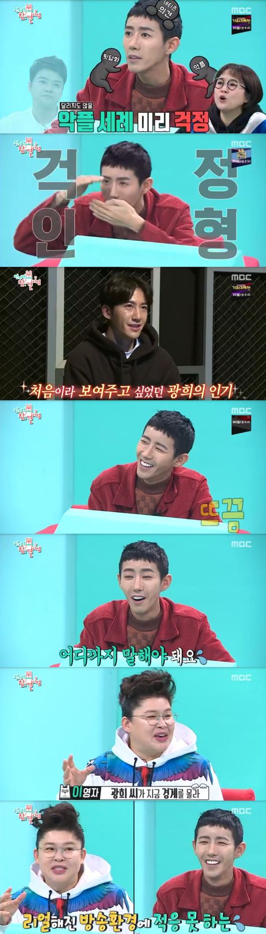 황광희가 2년만에 방송을 복귀, 걱정인형 모드로 첫 등장해 웃음을 안겼으며, 그런 광희의 팬으로 등장한 매니저가 재미를 더했다.