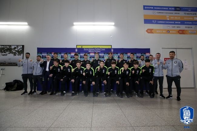 파울루 벤투 감독이 이끄는 축구대표팀이 23일 새벽 인천국제공항을 통해 아랍에미리트행 비행기에 몸을 실었다. 정승현(가시마 앤틀러스), 구자철, 지동원(이상 아우크스부르크), 손흥민(토트넘), 이청용(보훔), 이재성(홀슈타인 킬), 황희찬(함부르크), 기성용(뉴캐슬 유나이티드) 등 현지서 합류하는 8명을 제외하고 17명이 한 데 모여 코칭스태프와 함께 결전지로 향했다.