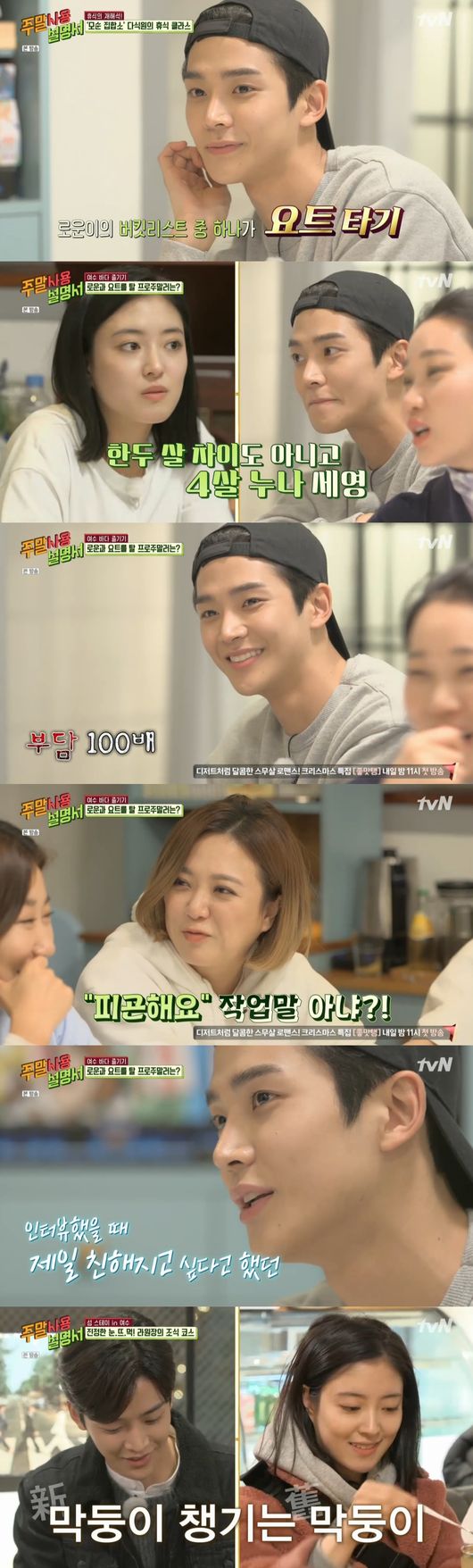 23일 전파를 탄 tvN '주말 사용 설명서'에서 김숙, 라미란, 장윤주, 이세영은 게스트로 온 SF9 로운의 버킷리스트를 이뤄주기로 했다. 로운은 요트 타기가 소원이라고 알렸고 김숙이 요트를 예약했다고 했다.