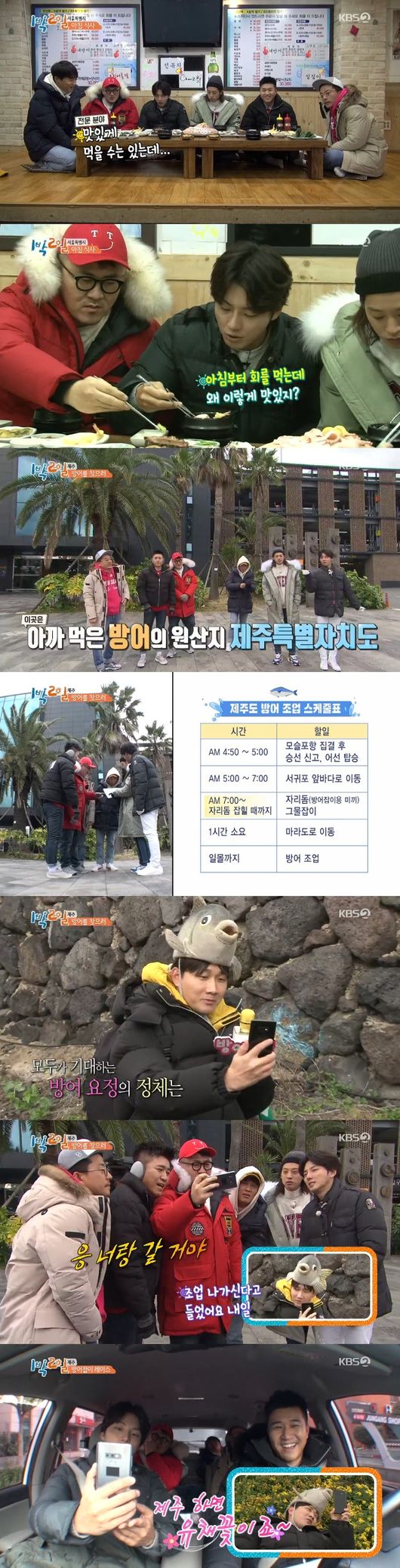 23일 오후 방송된 KBS2 ‘해피선데이-1박 2일 시즌3’에서는 자연산 방어를 잡기 위해 제주도로 떠난 ‘방어잡이 레이스’ 첫 번째 이야기가 펼쳐졌다.