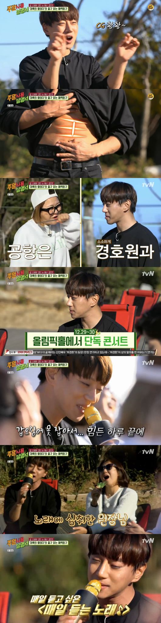 그는 제작진과 인터뷰에서 "바쁜 스케줄 때문에 주말을 제대로 못 즐긴다. 하지만 원래 익사이팅 레포츠를 즐긴다. 친구는 차를 타고 숙소에 와도 저는 오토바이를 타고 갈 정도였다. 하지만 이젠 산도 바다도 보기가 힘들다. 주말엔 곡 작업과 스케줄 때문에 제대로 못 쉰다"고 털어놨다.