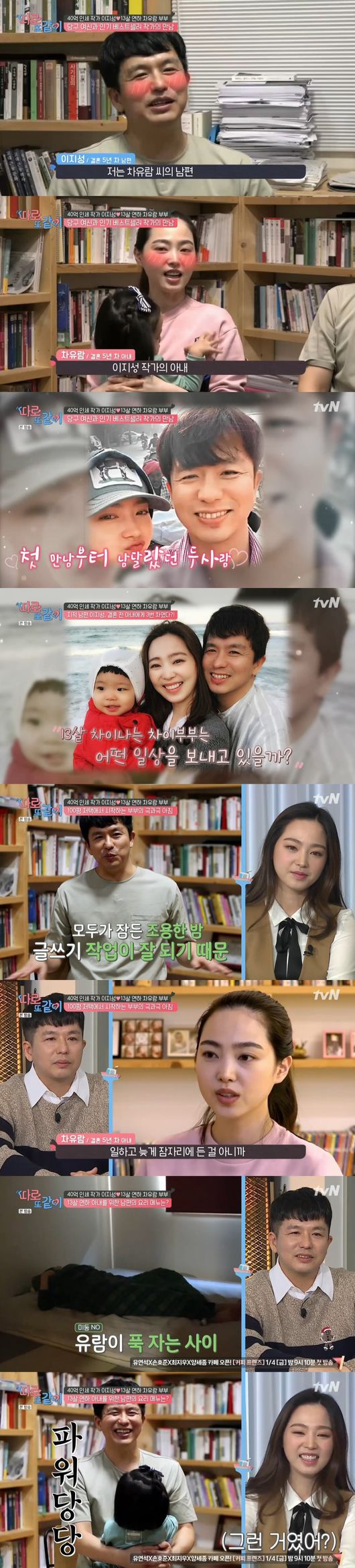 23일 전파를 탄 tvN '따로 또 같이' 12화에서 당구 여신 차유람과 이지성 작가의 일상이 공개됐다. 이들은 불 같은 사랑 끝에 지난 2015년 결혼해 화제를 모았다. 특히 차유람은 13살 어린데다 모태솔로인 상황에서 이지성을 만나 결혼에 골인해 더 큰 이슈가 됐다.