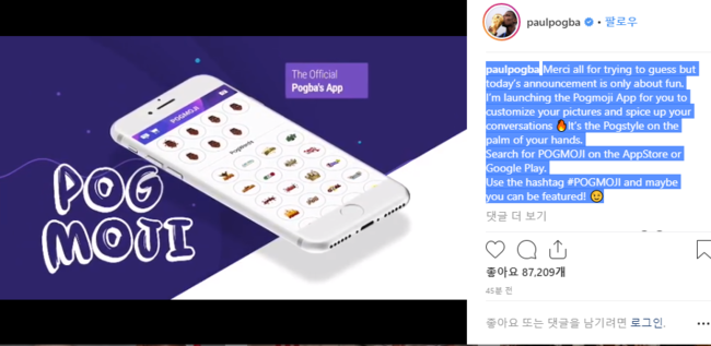 포그바는 "모두 추측하려고 했지만 중대발표는 재미를 위한 것이다. 사진 맞춤과 대화에 재미를 더해줄 포그모지(Pogmoji) 앱을 출시했다"며 모든 팬들을 허탈하게 만들었다.