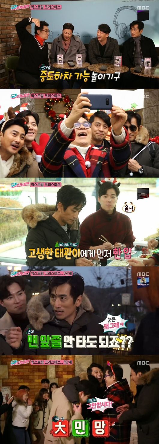 어제(23일) 방송된 MBC 일밤 ‘궁민남편’에서는 차인표, 김용만, 안정환, 권오중, 조태관이 함께 보내는 첫 크리스마스를 맞이해 놀이공원로 소풍을 떠났다. 익스트림(Extreme)한 놀이기구들의 향연에 다섯 남편은 마치 순수했던 어린 시절로 돌아간 듯 웃음과 비명(?)이 끊이지 않는 모습으로 안방극장을 웃음으로 폭격했다.