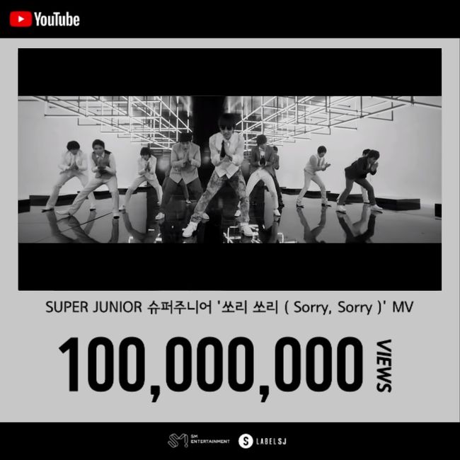 슈퍼주니어의 대표곡 ‘쏘리 쏘리 (Sorry, Sorry)’ 뮤직비디오가 유튜브 조회수 1억뷰를 돌파했다.