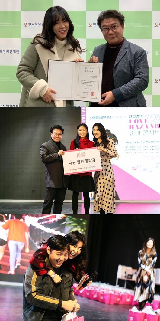 5년째 한국장애인재단 홍보대사를 맡아온 안선영은 지난 10년간 12번의 러브바자를 기획·진행하며 한부모가정 자녀 장학금과 장애인 학생들의 예술지원장학금으로 후원해왔다. 2014년부터 시작된 예술인 후원 프로젝트에서 첫 장학생으로 선발된 신수성 화가는 장애인 최초로 예술의전당(그룹전) 전시에 참가한 프로 화가로 당당히 자리매김했다. 2대 장학생은 색소폰 연주자 권진현 군으로 현재까지도 지속적인 후원이 이뤄지고 있다.