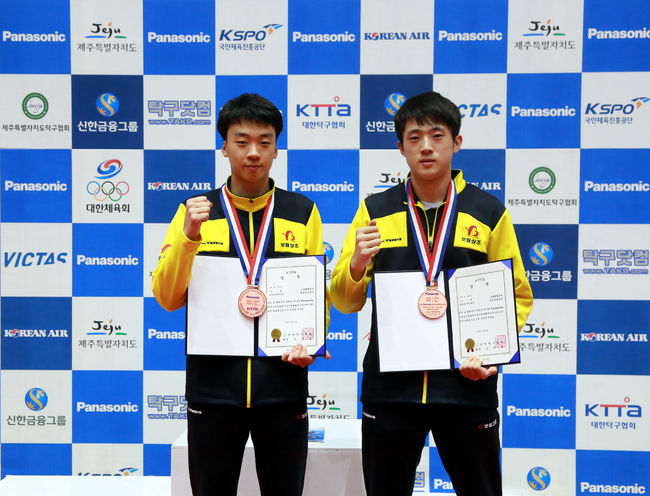 [사진]보람할렐루야 남자복식 3위를 차지한 백호균(좌), 김대우(우) 선수