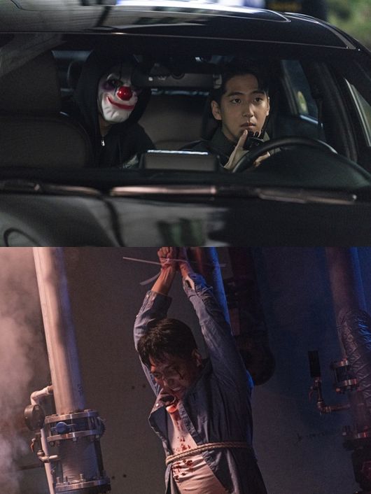 ‘나쁜형사’ 차선우가 삐에로 조커 연쇄 살인마에게 납치된 현장이 포착되었다.