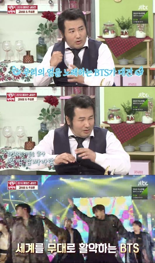 김보성은 24일 오후 방송된 JTBC 예능 ‘냉장고를 부탁해’에 출연해 '2018년 챔피언 결정전'에 임했다.