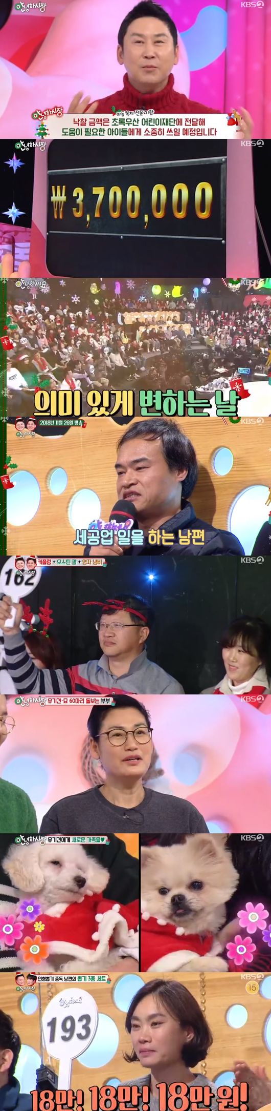 그 동안 출연했던 고민 사연자들의 유별난 취미용품부터 MC들의 소중한 물건, 게스트들이 갖고 나온 애장품이 경매로 부쳐져 얻어진 수익금으로 어려운 이웃을 돕는 웃음과 온정이 넘치는 일석이조의 훈훈한 시간이 펼쳐졌다.